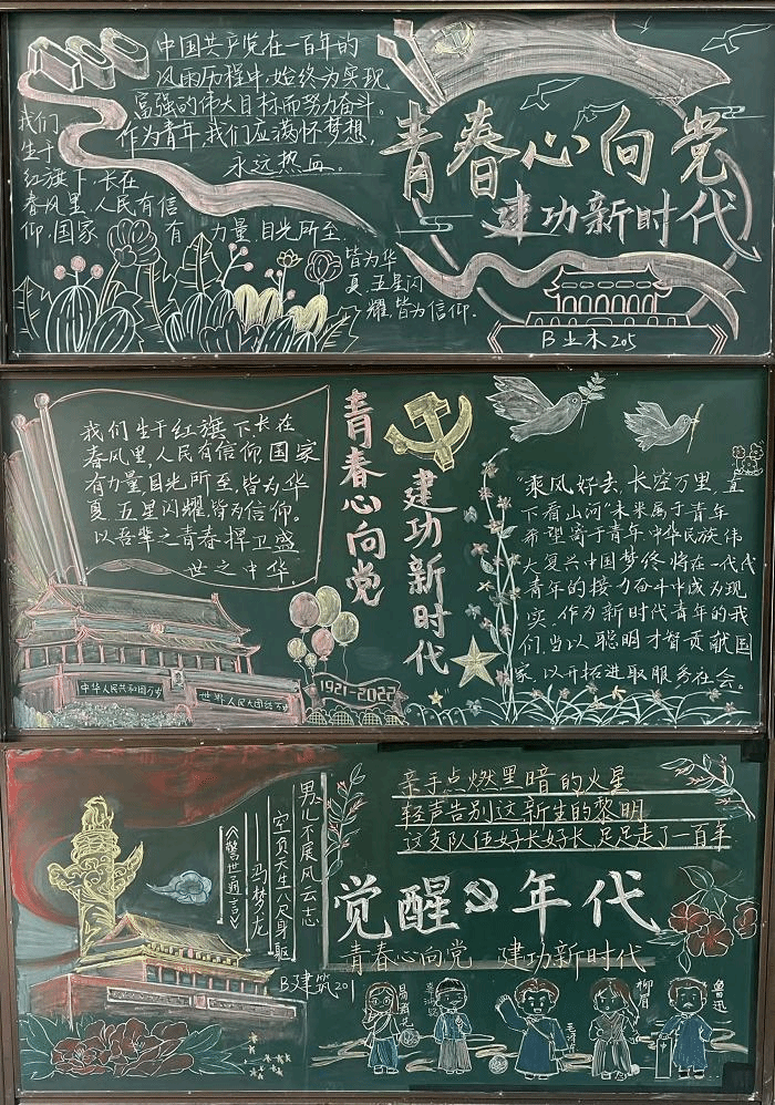 为进一步弘扬五四精神,鼓励广大青年奋发有为,勇做走在时代前列的不懈奋斗者,土木工程学院于5月2日在希望大道校区开展“青春心向党 建功新时代”主题黑板报评比活动。