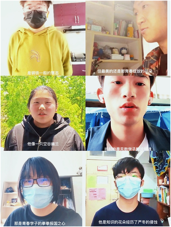重温入团誓词后,辅导员陈亚雷带领同学们录制五四青年节祝福视频,表达对祖国和共青团的感谢,为广大青少年献上真挚的祝福。