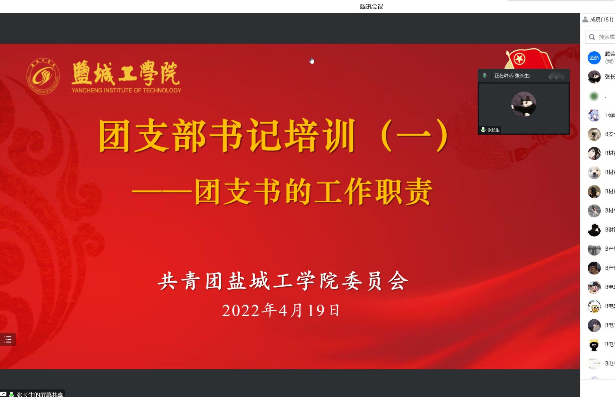 为进一步引导广大基层共青团干部深入学习宣传贯彻习近平新时代中国特色社会主义思想,切实推动学校共青团工作改革创新和从严治团,进一步加强基层团组织建设,强化基层团干部的理论学习和实践工作能力。4月19日下午,在希望大道校区机械馆A223,校团委举办新生团支部书记培训会第一讲。培训会由机械优集学院团委副书记张长生主讲,学校全体2021级团支书和其他年级团支书代表共180余人通过线上、线下的方式参加培训会,会议由校团委组宣部主任徐潘虹主持。
