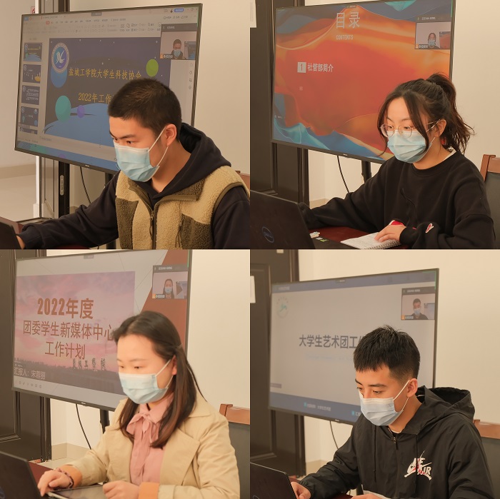 汇报会上,14位团属主要学生干部分别从工作理念、工作规划、工作举措等方面汇报了2022年度的工作计划。汇报会上,各组织负责人从深化学习、强化责任、优化组织、细化服务等方面提出了本组织的工作思路,力求在2022年度的各项学生工作中进一步提升政治站位高度、加大组织改革力度、扩大引领服务广度。会上,学生会主席团成员韦琰霖以“以行引领,全心服务——做有信仰、有担当的学生干部”为题做了学生会工作心得分享。他号召所有的学生干部要发扬好“党有号召,团有响应”的优良作风,担负好“争当表率、争做示范、走在前列”的青春责任,全心全意为同学服务,建设好“盐粒子”身边的共青团。