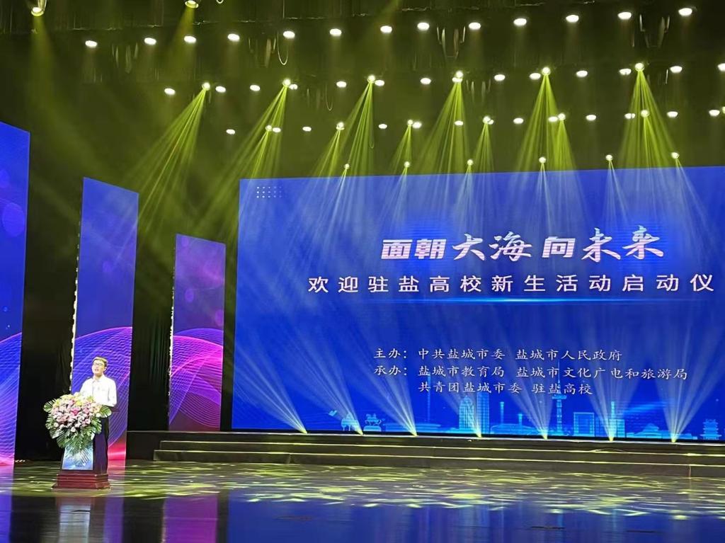 10月23日晚,由中共盐城市委、盐城市人民政府主办,盐城市教育局、盐城市文化广电和旅游局、共青团盐城市委、驻盐高校承办的“面朝大海向未来”欢迎驻盐高校新生活动启动仪式在盐城市文化艺术中心大剧院举行。我校党委书记刘祖汉,校长、党委副书记方海林出席,150名2021级新生代表赴主会场参加现场活动。