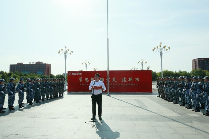 10月1日上午9点,我校在希望大道校区图书馆南广场举行“学思想 跟党走 建新功”——庆祝中华人民共和国成立74周年升国旗仪式。校党委书记方海林,校长、党委副书记邵荣,校党委常委、副校长张勤芳出席升旗仪式,党委办公室、党委宣传部、党委学生工作部、党委保卫部、党委研究生工作部、后勤保障集团、团委等部门负责同志,二级学院党委(总支)书记、副书记,团委(副)书记,研究生代表、新发展团员代表、新发展党员代表、学生代表等共计100余人参加仪式。张勤芳主持升国旗仪式。