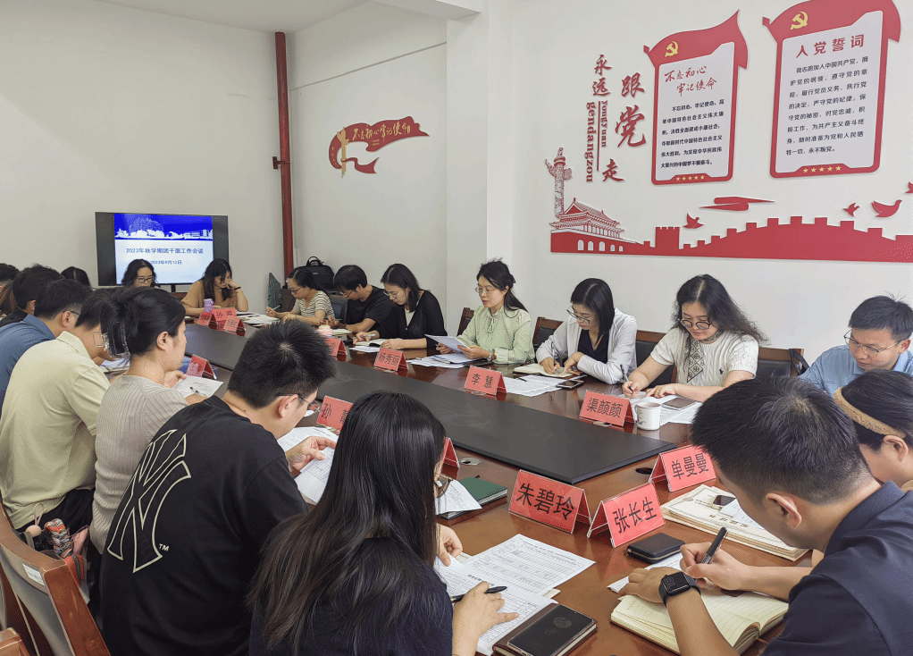 为进一步加强团干部队伍建设,系统梳理总结上学期团工作,安排部署本学期重点工作任务,9月12日下午,校团委在希望大道校区团委会议室组织召开2023年秋学期团干部工作例会。校团委书记杨秀丽、全体工作人员、全体专兼职团干部参加会议,校团委副书记方璇主持会议。