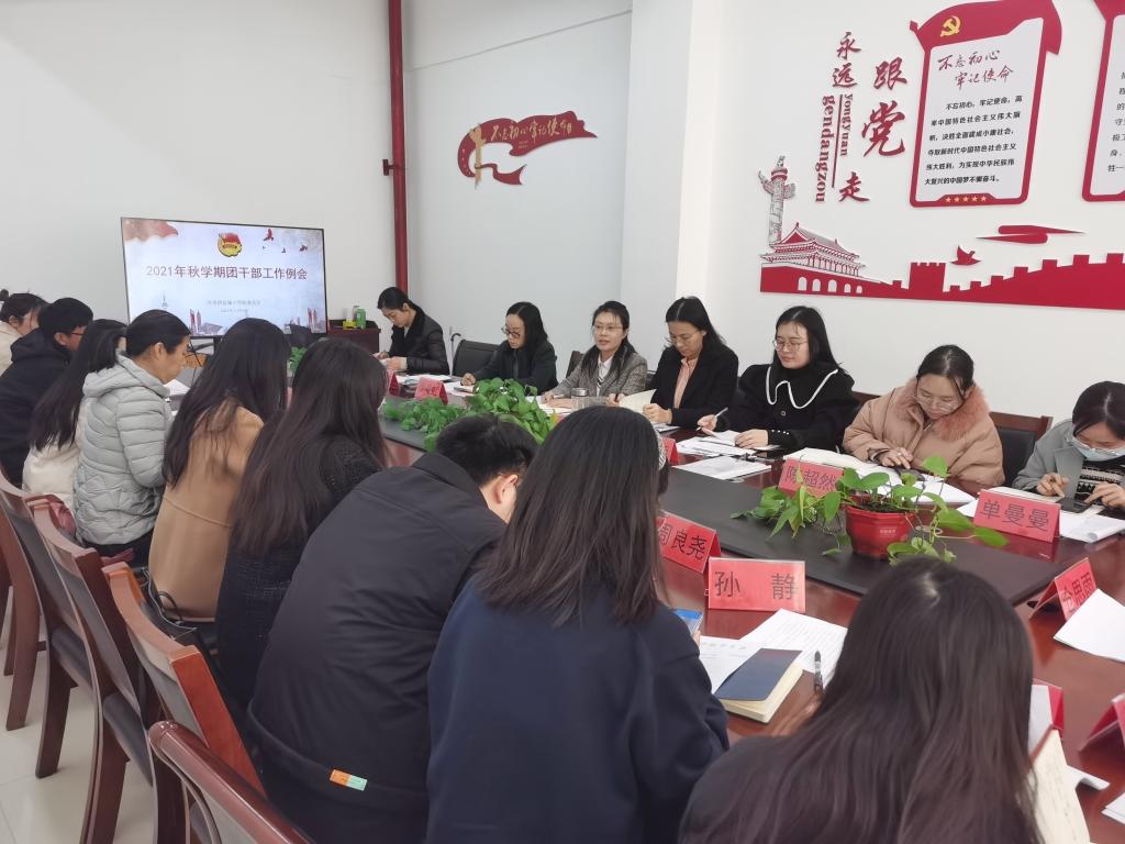 11月25日上午,校团委在希望大道校区团委会议室召开2021年秋学期团干部工作例会。校团委全体人员、二级学院团委(副)书记参加会议。会议由校团委副书记方璇主持。