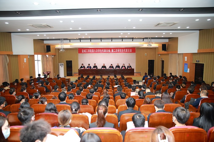 与会代表们听取了会议筹备工作报告、盐城工学院第八次学生代表大会和第二次研究生代表大会工作报告,审议通过了《关于<盐城工学院第八次学生代表大会工作报告>的决议》。会议选举并产生了学校第八次学生代表大会常任代表40名,第二次研究生代表大会常任代表15名,新一届学生会、研究生会主席团各5名成员。