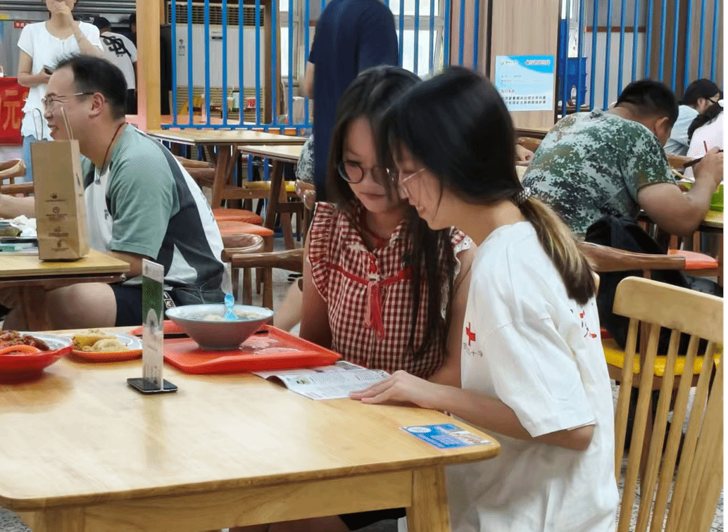 志愿者们走进食堂等人流密集处开展精准宣传。在食堂入口、打饭窗口、餐桌等显眼位置张贴“青春无艾”主题海报,通过发放宣传单、现场讲解等方式,向来往师生普及艾滋病传播途径、预防方法及“日常接触不传播”等科学认知。宣传单内容图文并茂,包含“艾滋病基础知识”“防艾日常习惯”“如何对待感染者”等板块,便于学生随手取阅、随时学习。不少学生在拿到宣传单后驻足阅读,主动向志愿者询问相关问题,现场氛围热烈。