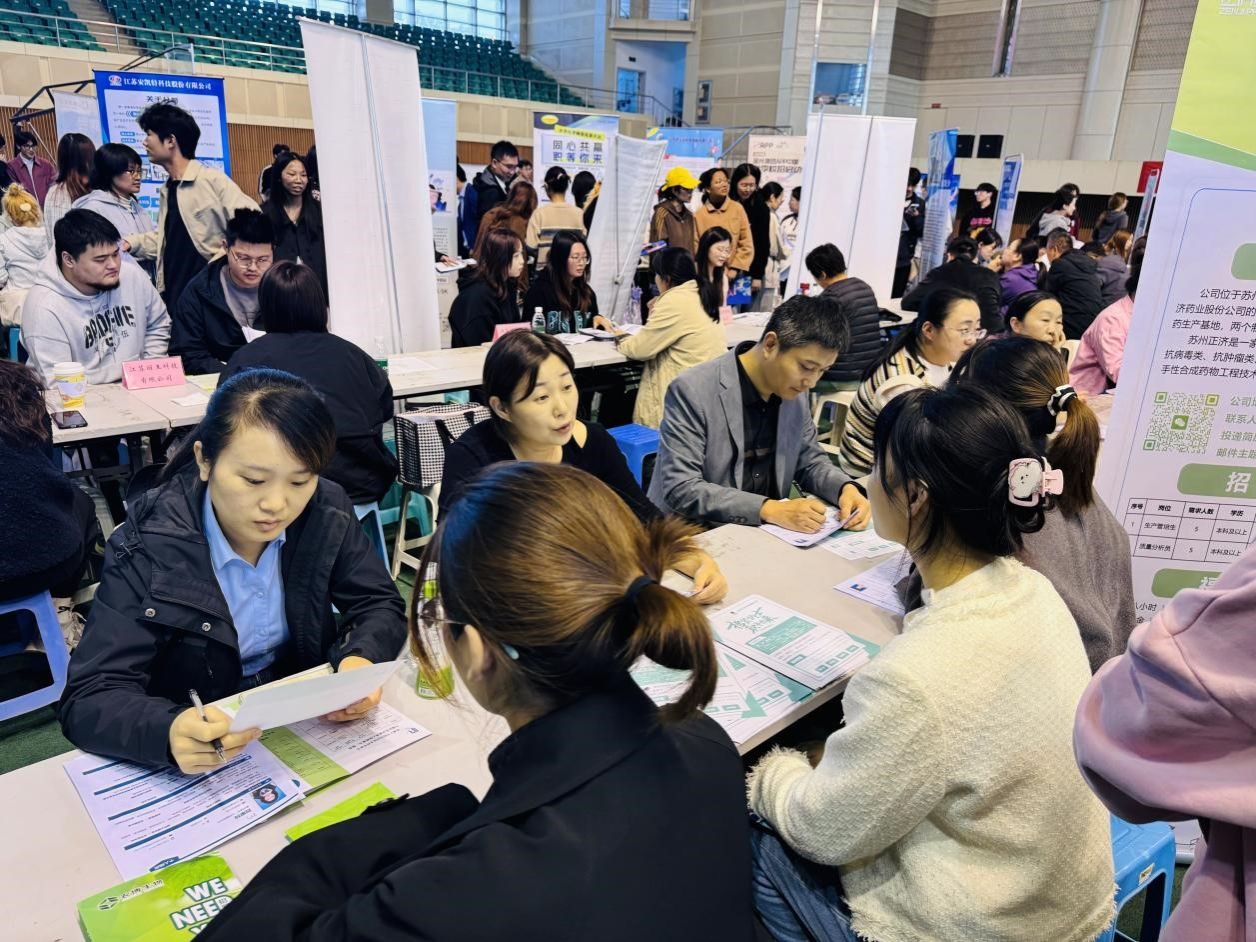 线上活动中,来自江苏索普集团、利民化学有限责任公司、江苏海力化工有限公司、盛隆资源再生有限公司、南通江山农药化工股份有限公司、正大天晴药业集团股份有限公司以及江苏安凯特科技股份有限公司等8家企业的人力资源负责人和技术专家化身“职场引路人”,通过实时网络直播面向全省高校应届毕业生展开精准岗位推介。各企业代表系统阐述了企业概况、战略布局、人才招募计划及薪酬福利体系,推出涵盖生物医药、化学工程等领域的优质岗位资源。招聘会现场,毕业生手持简历穿梭于60余家企业展位间,时而驻足查看招聘简章,时而与用人单位深入交流,寻找心仪的职位。