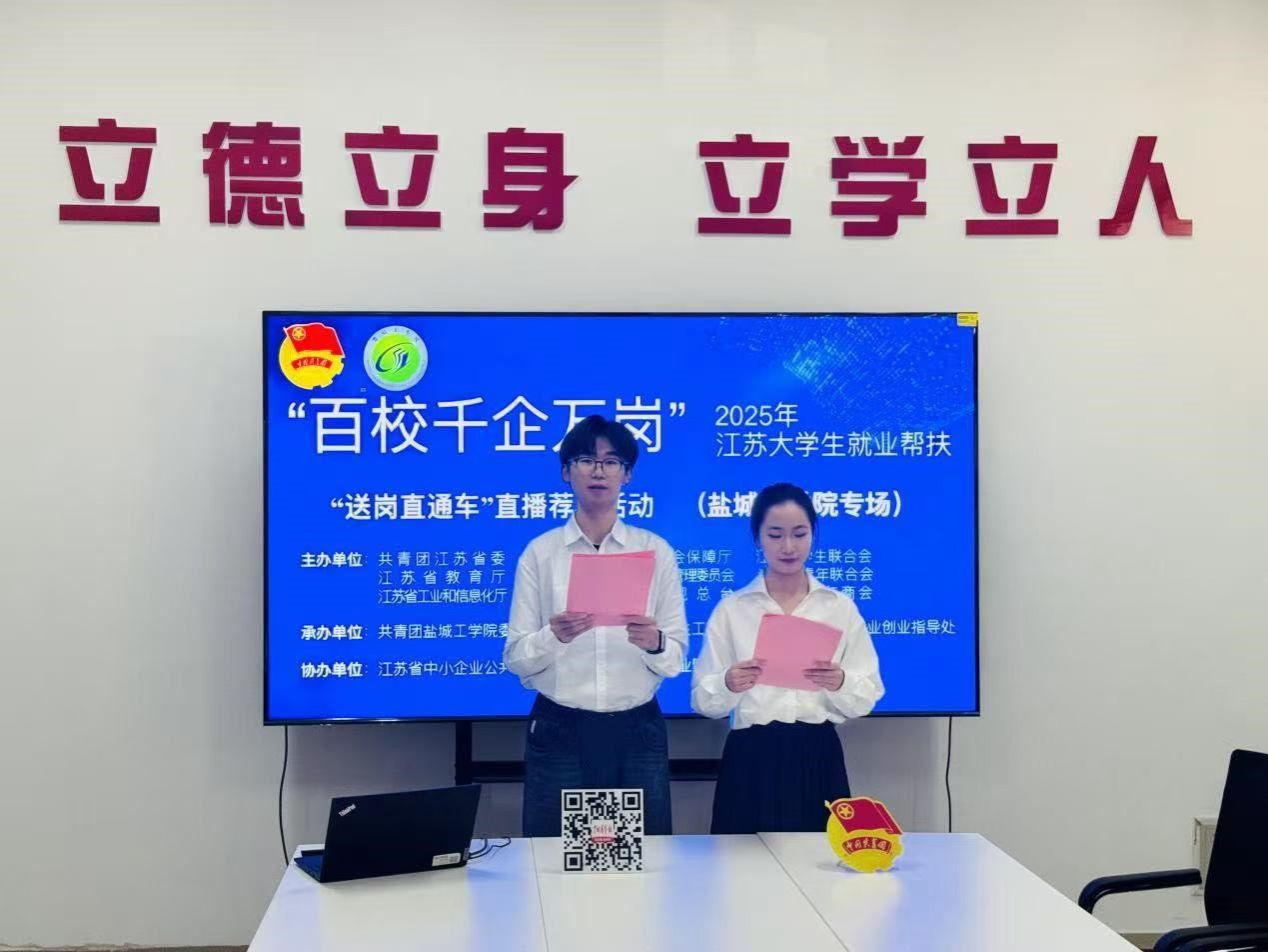 为深入贯彻习近平总书记关于青年工作的重要思想,落实党的二十届四中全会作出的“促进高质量充分就业”战略部署,推动我校毕业生实现更充分就业,11月5日下午,校团委联合化学化工学院成功举办“百校千企万岗”2025年江苏大学生就业帮扶行动“送岗直通车”直播荐岗活动(盐城工学院专场),采用“云端推介+现场互动”的模式,为青年学子打造便捷的就业服务体系。