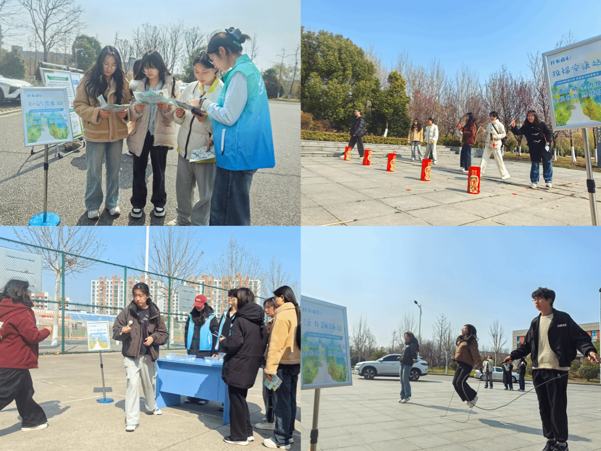 本次活动共设置6个特色打卡点,遍布校园多个区域,各打卡点将结核病防治知识与趣味挑战巧妙融合,让同学们在闯关体验中收获知识。大学生活动中心一楼广场的“知识充电站”,同学们现场作答结核病传播、筛查、治疗等相关问题,在思考答题中夯实知识基础;博学楼“知核防核站”,大家观看结核病防治宣传视频,直观了解校园防痨的核心要点;机械馆门前广场的“活力跳绳站”,让同学们在运动中体会增强体质对预防结核病的重要意义;行政楼北侧小广场的“投福安康站”,1.5米外的投壶挑战趣味十足,箭身标注的防治知识点随投壶动作悄然传递;铁军广场的“稳健平衡站”,头顶书本直线往返走的挑战,考验身体协调性的同时,让现场充满欢乐;篮球场上的“快乐运球站”,同学们用筷子夹取贴有“飞沫传播”“勤开窗通风”等知识标签的乒乓球,在专注操作中牢记日常防护关键。每个打卡点均有志愿者现场指导,完成挑战即可收集印章,校园里的加油声、欢笑声此起彼伏,成为春日校园里一道别样的风景线。