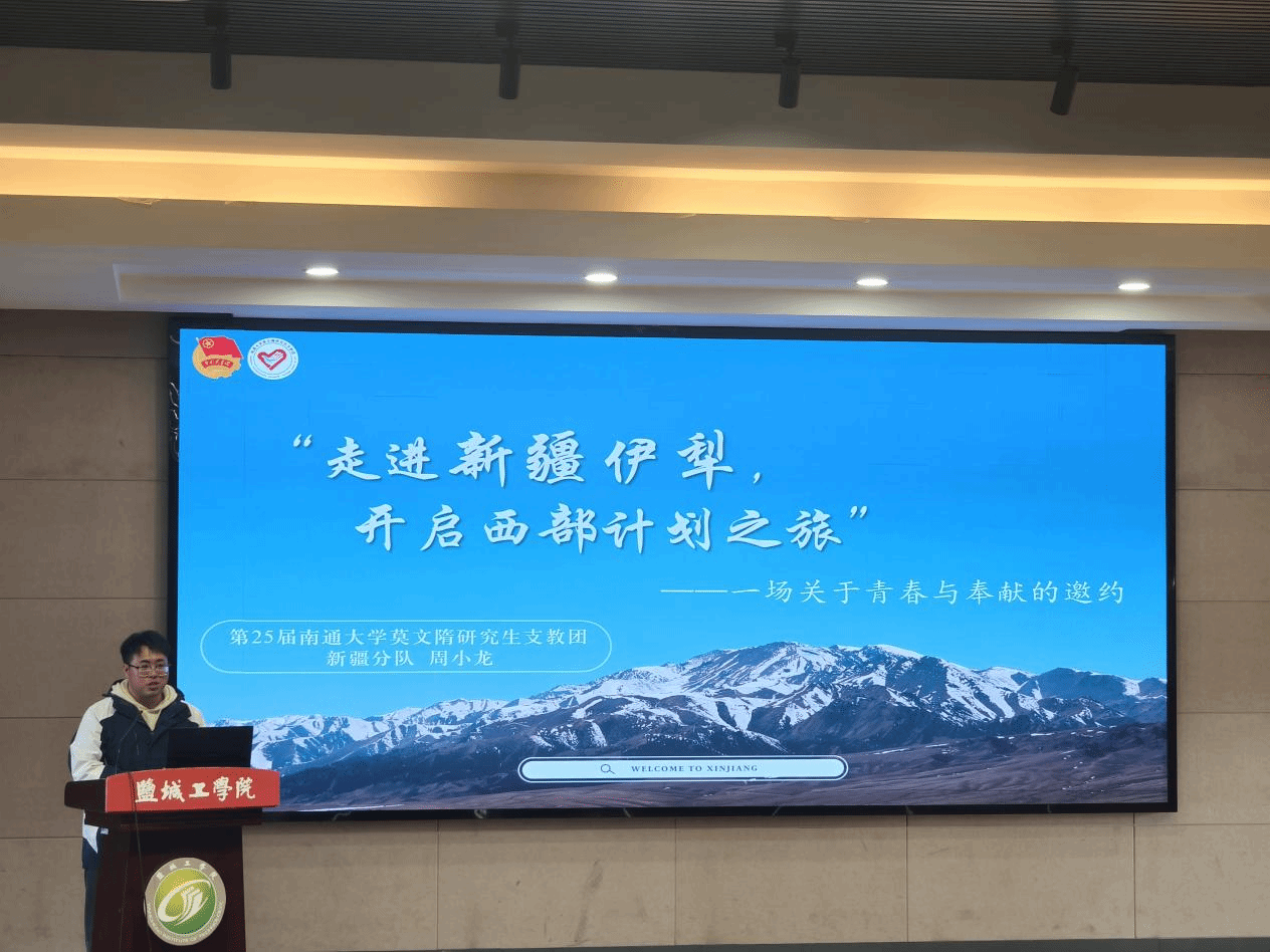 宣讲会上,“西部计划”优秀青年志愿者南通大学莫文隋研究生支教团新疆分队周小龙,以“选择与初心、奉献与成长、收获与感动”三大篇章为主线,深情讲述了自己远赴伊犁支教的奋斗历程,在边疆热土上坚守育人初心、践行青春使命,以实际行动诠释了青年志愿者的责任与担当。“乡村振兴计划”优秀志愿者我校2025年亭湖区乡村振兴计划志愿者张翰文,则以“第一次走进一群人、第一次真正理解一件事、第一次点亮一个梦、第一次同行一段路”为切入点,细数投身乡村振兴一线的所见所闻、所思所悟,在服务群众中锤炼自我,展现了当代大学生扎根基层、实干笃行的青春风貌。陆苏华围绕具体服务内容、规范报名流程、全方位政策支持等方面,对“西部计划”“乡村振兴计划”两大志愿服务项目进行了详细介绍,重点解读了经济、考研、考编、就业等方面的政策支持。在场学子对基层志愿服务项目有了更全面、更深入的认知。整场宣讲干货满满、鼓舞人心,充分调动了青年学子奔赴基层、建功立业的积极性,号召广大青年把个人理想融入国家发展大局,在祖国最需要的地方绽放青春光彩。