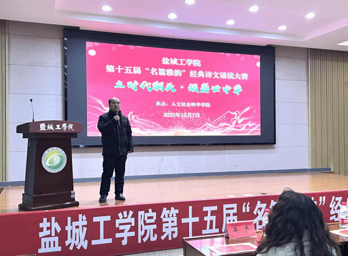 12月7日晚,由校第二十八届校园科技文化艺术节组委会主办,人文社会科学学院承办的“立时代潮头,颂盛世中华”第十五届“名篇雅韵”经典诗文诵读大赛决赛在南校区机械馆报告厅举行。人文学院党总支副书记姚爱华、中文系主任蒋继华、学生党支部书记乐珮珮等担任评委,来自各学院的200余名同学现场观看比赛。