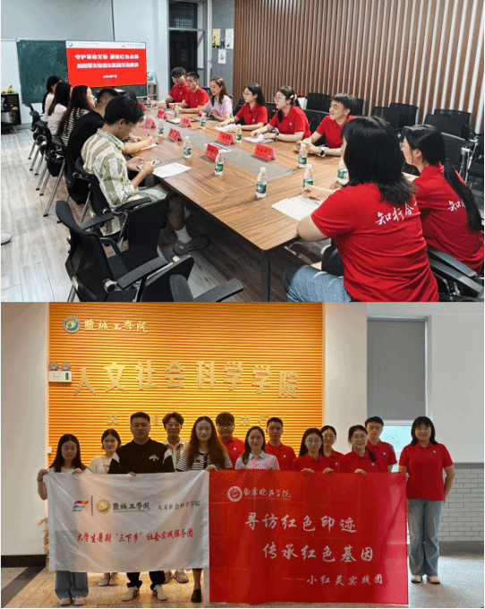 实践初期,成员们通过查阅新四军革命历史及文物相关的文献档案、新闻报道、视频纪录片等形式,整理挖掘宋公碑、“娃娃剧团”党旗、宋泽夫遗稿《喜鹊》等一系列具有代表性的新四军革命文物,以此建立新四军典型革命文物台账,为开展实践提供坚实的材料支撑。7月13日,实践团邀请南京晓庄学院马克思主义学院“小红灵”实践团师生代表来校开展交流研讨。会上,南京晓庄学院马克思主义学院团委书记王翼凡向大家介绍了学院特色实践团“小红灵”的基本情况,并就实践团历年开展的红迹寻访调研实践活动以及实践成果转化等方面进行经验分享。双方师生围绕“新四军革命文物活化实践”“新四军革命精神传承”“红色实践活动开展形式”等方面开展交流探讨。此次交流活动进一步完善了实践团成员的知识储备,为后续活化新四军革命文物、再现文物“红色基因”提供了思路借鉴。