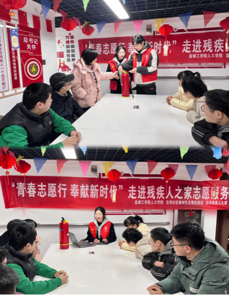 活动中,志愿者们向残疾人朋友分发了精心准备的慰问品,主动帮助中心打扫卫生、整理内务、洗碗盛菜。在陪伴残疾人朋友进行二极管手工制作、协助他们锻炼复健、一起投入趣味横生的投壶游戏过程中,彼此之间的距离被迅速拉近。志愿者们与残疾人朋友进行深入交流,了解他们的日常生活状况和身体情况,表达关心问候,鼓励他们自立自强,以乐观心态面对未来。最后,志愿者们还面向残疾人朋友重点宣传了消防安全知识,向他们示范了手提式干粉灭火器的正确使用方法,以此提高他们的安全防范意识和自救互救能力。