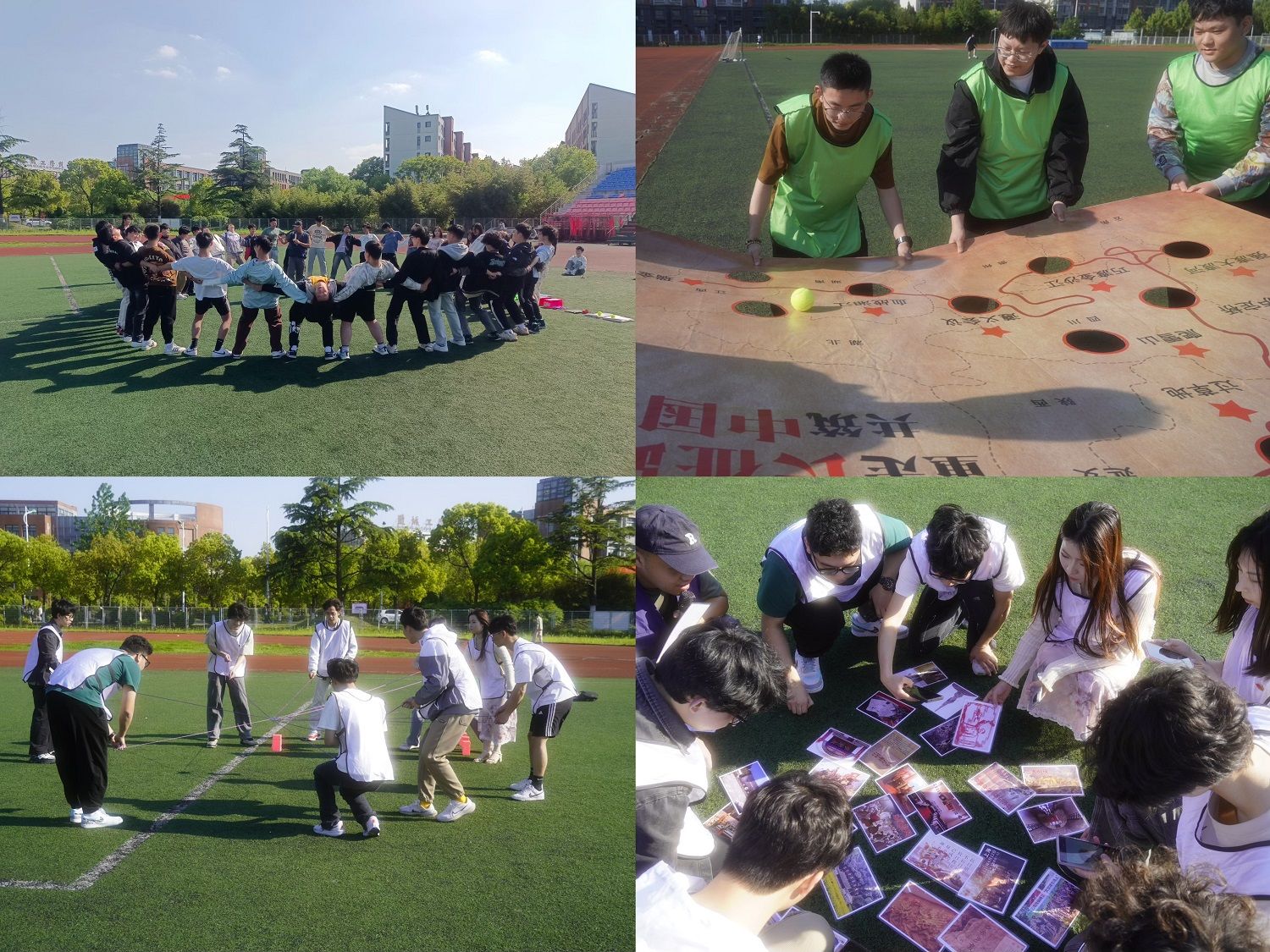本次素质拓展活动由“重走长征路”“合力建塔”“光辉历程”三个项目组成。在教练的带领下,所有成员组成四支队伍,各自确定口号和队名,以铿锵有力的口号宣誓自信自强、积极向上的青春态度。每组队员们全心投入到拓展项目里,大家互相支持、加油打气,共同克服了一个又一个难关,在团队竞赛中协同配合、凝心聚力,充分展示了青年学子的蓬勃朝气和青春活力,也营造出了同心共进、奋勇拼搏的团队氛围。